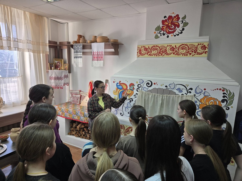В фольклорной комнате с аутентичным стилизованным интерьером ребята совершили путешествие во времени.