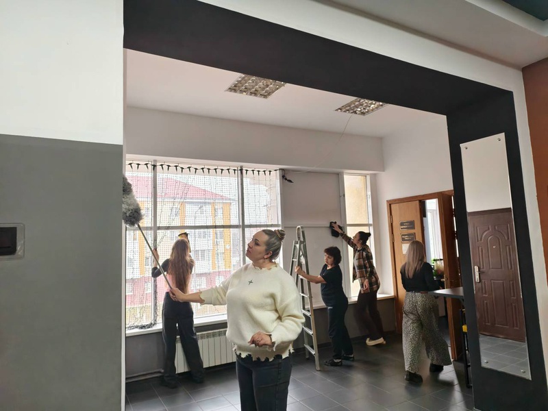 На днях мы дружно собрались на субботник и навели идеальный порядок внутри здания. Теперь наши залы и коридоры сияют чистотой, а участники художественной самодеятельности смогут заниматься в комфортных и приятных условиях